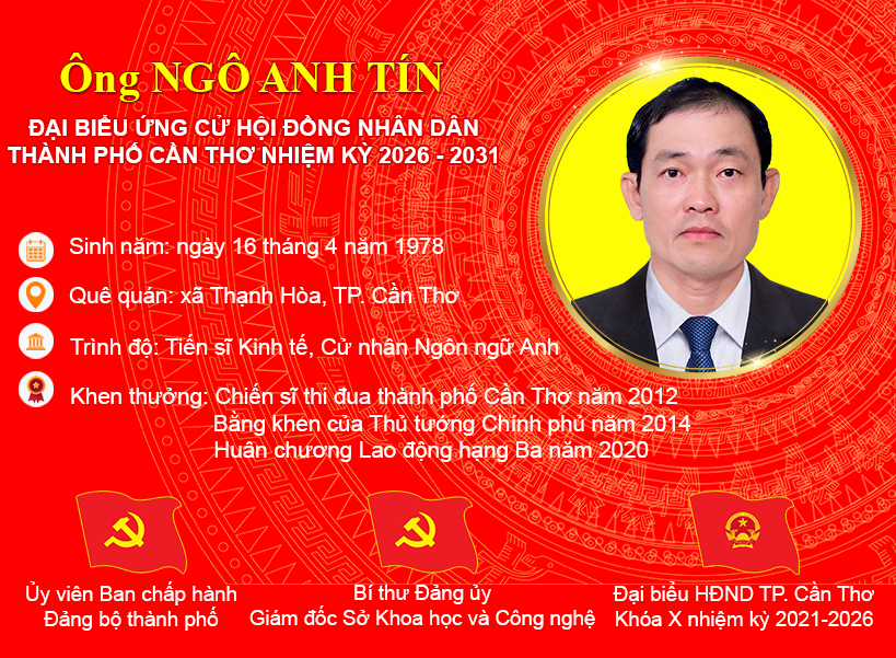 Theo chương trình hiệp thương của Ủy ban MTTQ Việt Nam TP. Cần Thơ, ông Ngô Anh Tín – Ủy viên Ban Chấp hành Đảng bộ thành phố, Bí thư Đảng ủy, Giám đốc Sở Khoa học và Công nghệ TP. Cần Thơ đã được giới thiệu ứng cử đại biểu HĐND thành phố nhiệm kỳ 2026 – 2031 và thực hiện trình bày chương trình hành động trước cử tri theo quy định.
