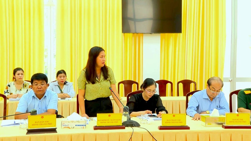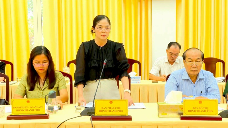 Lãnh đạo các Ban của Hội đồng nhân dân thành phố cùng các sở, ban, ngành thảo luận cho ý kiến về nội dung các tờ trình