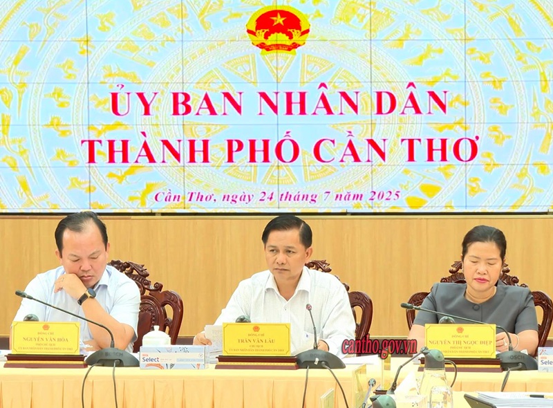 Ngày 24/7, Ủy ban nhân dân thành phố Cần Thơ đã tổ chức phiên họp thành viên Ủy ban nhân dân thành phố nhằm thảo luận, cho ý kiến đối với các nội dung dự kiến trình tại kỳ họp thường lệ Hội đồng nhân dân thành phố tháng 7-2025. Phiên họp do các đồng chí Chủ tịch, Phó Chủ tịch Ủy ban nhân dân thành phố chủ trì, điều hành, với sự tham dự của đại diện lãnh đạo các sở, ban, ngành cùng các Ban của Hội đồng nhân dân thành phố.
