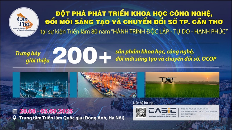 Cần Thơ giới thiệu thành tựu KH,CN,ĐMST&CĐS tại Triển lãm 80 năm Thành tựu đất nước