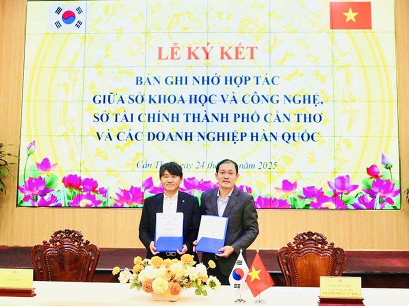 Ông Ngô Anh Tín, Giám đốc Sở KH&CN TP Cần Thơ, ký kết biên bản ghi nhớ với đại diện Công ty ITS Korea.