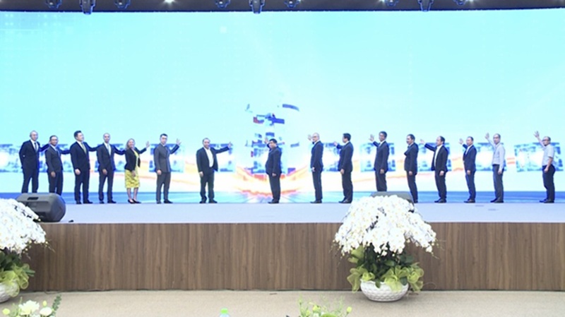 Phó Thủ tướng Nguyễn Chí Dũng và các đại biểu thực hiện nghi lễ công bố các sáng kiến nhằm triển khai Nghị quyết 57 của các mạng lưới ĐMST và các chuyên gia các ngành công nghệ chiến lược - Ảnh: VGP/Thu Sa