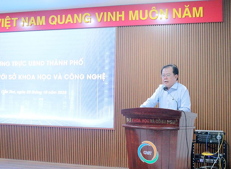 Ngày 23/10/2025, lãnh đạo UBND thành phố Cần Thơ đã có buổi làm việc với Sở Khoa học và Công nghệ (Sở KH&CN) về kết quả hoạt động khoa học, công nghệ, đổi mới sáng tạo và chuyển đổi số (KHCN,ĐMST&CĐS) 9 tháng đầu năm và phương hướng, nhiệm vụ 3 tháng cuối năm 2025.