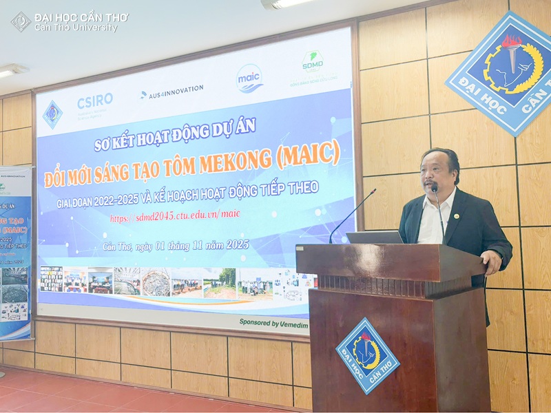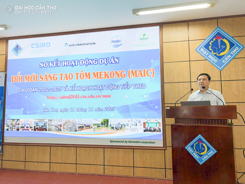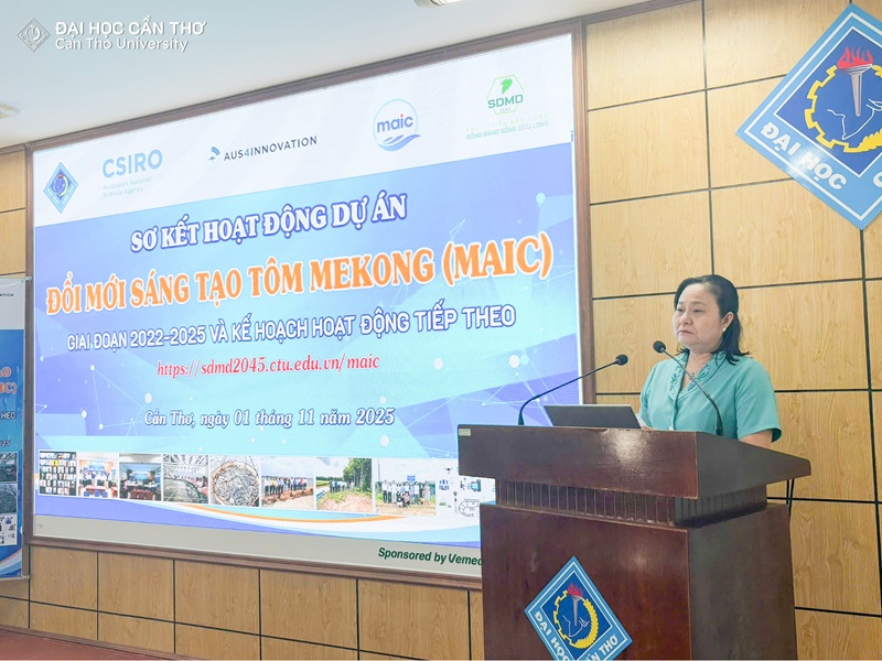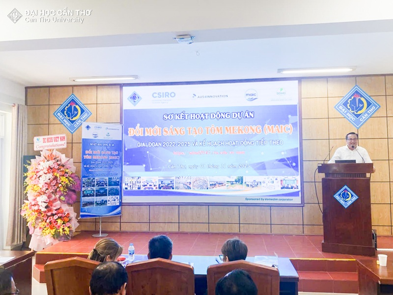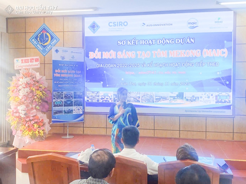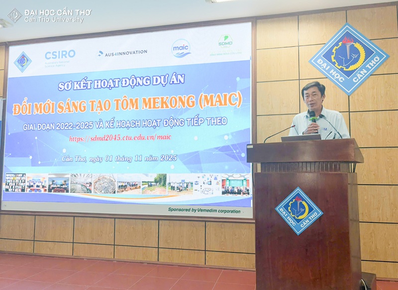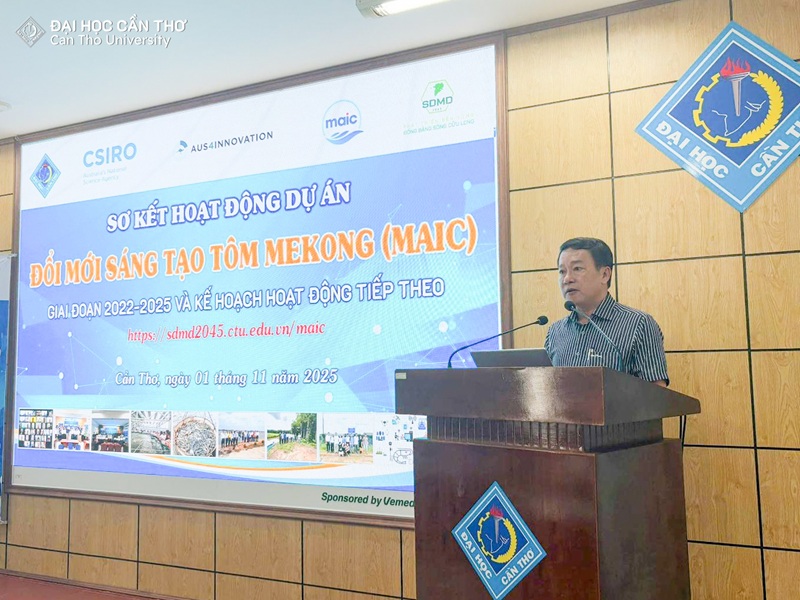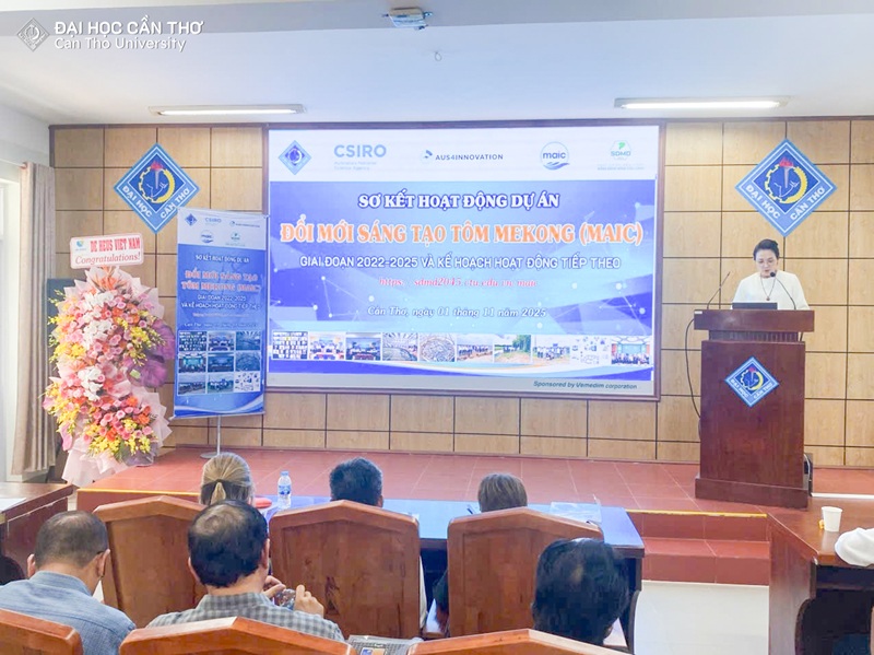 Sáng ngày 01/11/2025 tại Trường Thủy sản - Đại học Cần Thơ (ĐHCT), Hội thảo sơ kết dự án Đổi mới sáng tạo tôm Mekong (MAIC) giai đoạn 2022-2025 và kế hoạch hoạt động tiếp theo đã được tổ chức. Đây là sự kiện thường niên trong khuôn khổ Dự án MAIC (Pha 2) do ĐHCT chủ trì. Dự án do Tổ chức Nghiên cứu Công nghiệp và Khoa học Khối thịnh vượng chung (CSIRO) Úc tài trợ, thuộc Chương trình đổi mới sáng tạo hợp tác giữa Bộ Ngoại Giao và Đầu tư - Úc và Bộ Khoa học và Công nghệ -Việt Nam.