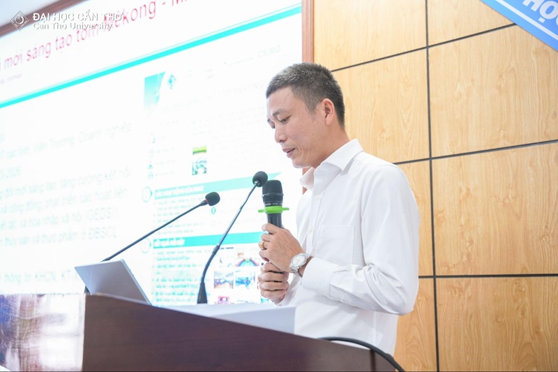 PGS.TS. Huỳnh Trường Giang, Phó Hiệu Trưởng Thủy sản, trình bày kết quả hoạt động của dự án MAIC 2022- 2025