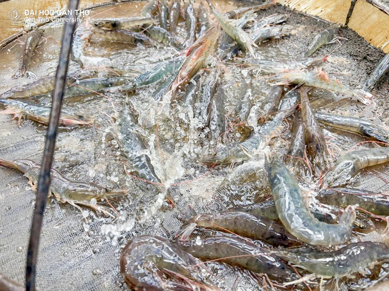 Tôm chân trắng nuôi trong hệ thống tuần hoàn kết hợp đa loài CTU-RAS, sản phẩm sạch, chất lượng cao