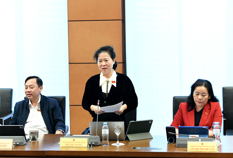 ĐBQH Tô Ái Vang phát biểu tại buổi thảo luận.