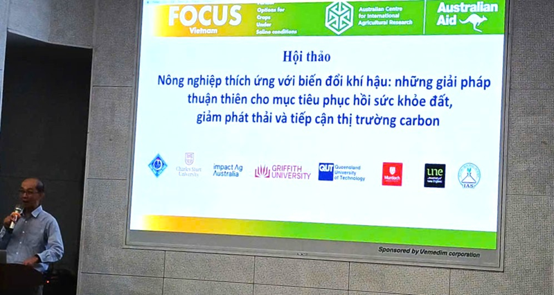 Trong khuôn khổ hợp tác nghiên cứu với Trung tâm Nghiên cứu Nông nghiệp Quốc tế Úc (ACIAR Australian Centre for International Agricultural Research), Trường Nông nghiệp – Đại học Cần Thơ tổ chức Hội thảo “Nông nghiệp thích ứng với biến đổi khí hậu: những giải pháp thuận thiên cho mục tiêu phục hồi sức khỏe đất, giảm phát thải và tiếp cận thị trường các-bon” vào sáng ngày 25/11/2025.