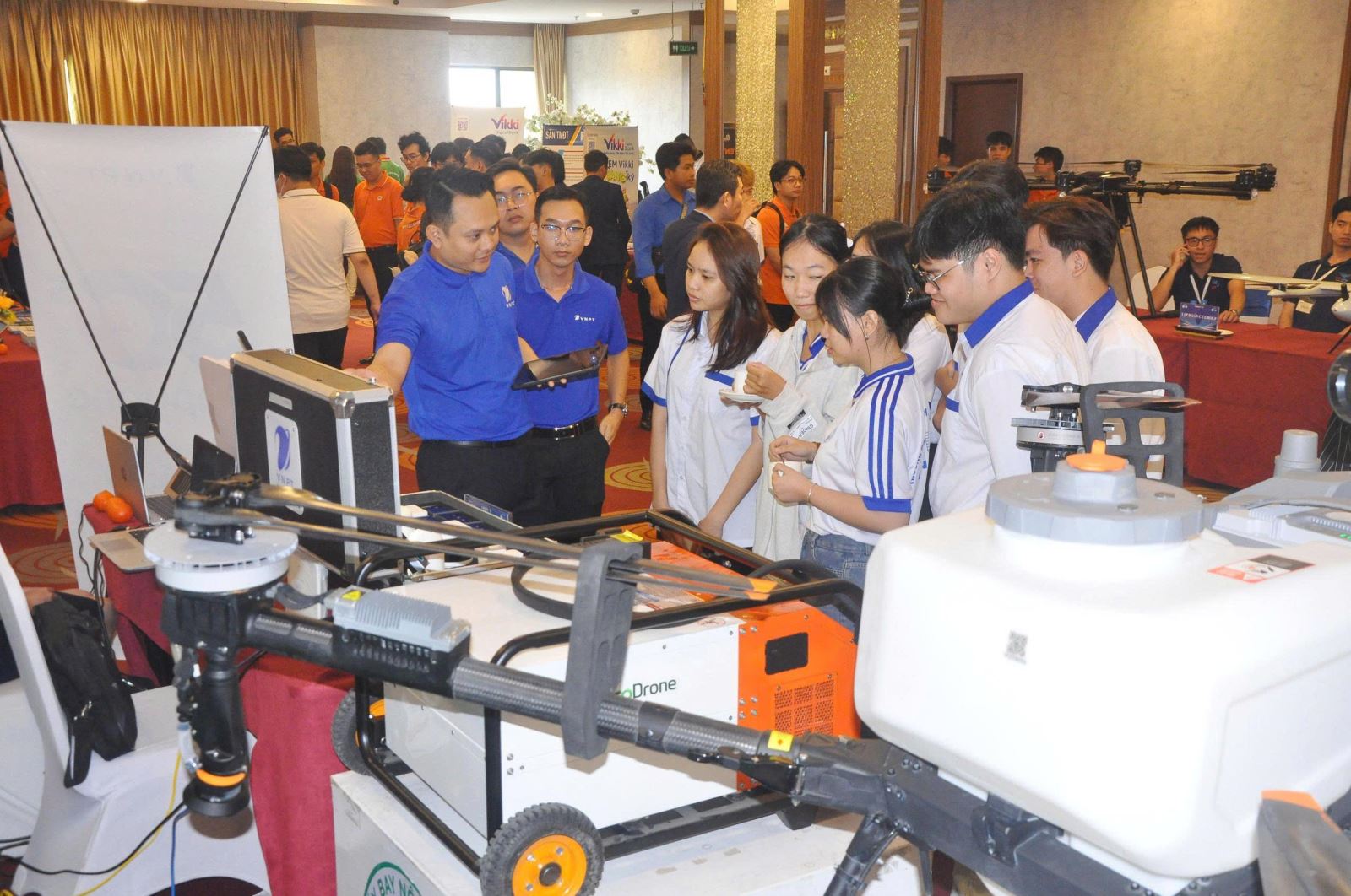 Các đại biểu tham quan các sản phẩm khoa học công nghệ trưng bày bên lề sự kiện.