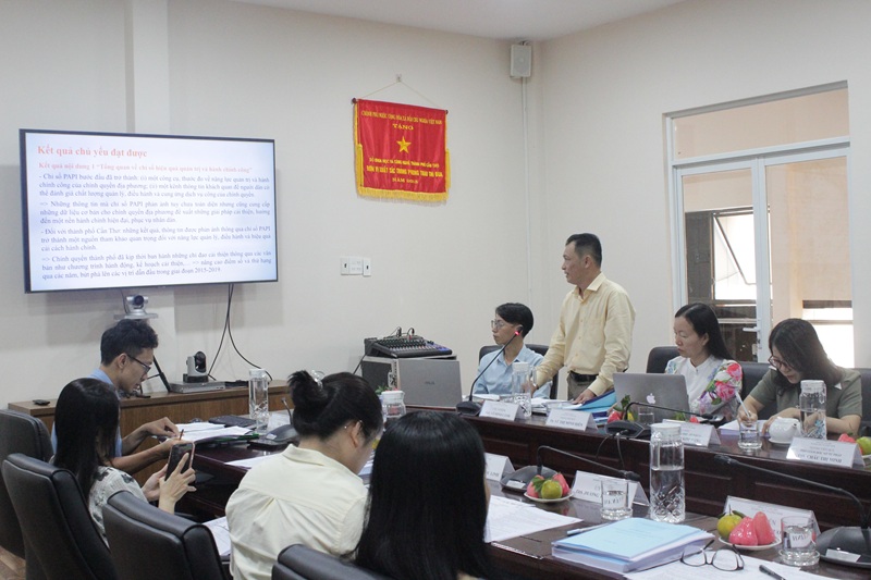 Do đó, Ban chủ nhiệm đã báo cáo trọng tâm về đề tài. Theo đó, mục tiêu của đề tài thực hiện nhằm đánh giá đúng thực trạng năng lực quản trị và hành chính công của chính quyền thành phố Cần Thơ thông qua chỉ số PAPI giai đoạn 2014-2023. Từ đó, đề xuất các giải pháp khả thi nâng cao năng lực quản trị và hành chính công của chính quyền thành phố Cần Thơ đến năm 2030, tầm nhìn đến năm 2045.
