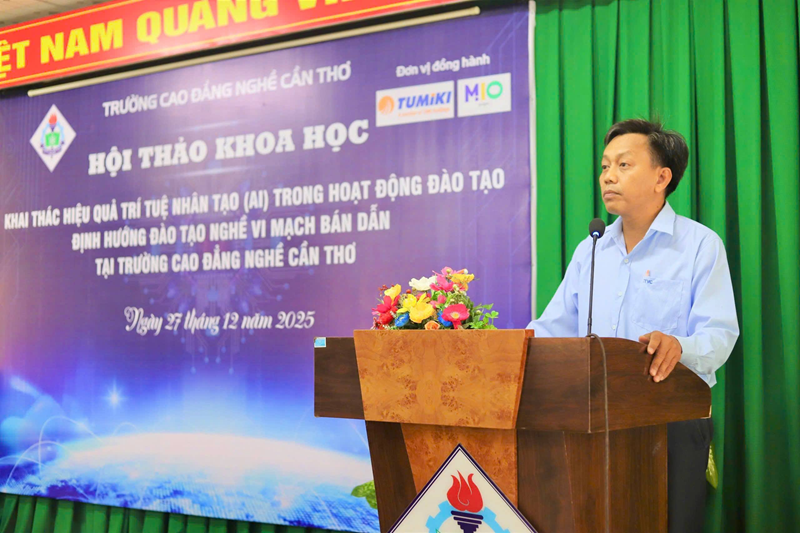 Sáng 27/12, Trường Cao đẳng nghề Cần Thơ tổ chức Hội thảo khoa học với chủ đề “Khai thác hiệu quả trí tuệ nhân tạo (AI) trong hoạt động đào tạo – Định hướng đào tạo nghề Vi mạch bán dẫn tại Trường Cao đẳng nghề Cần Thơ”.