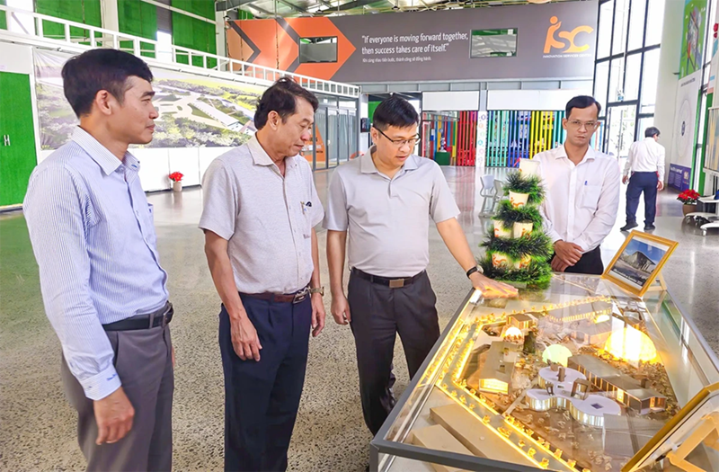 Đoàn nghe giới thiệu về Khu CNTT tập trung Hậu Giang.