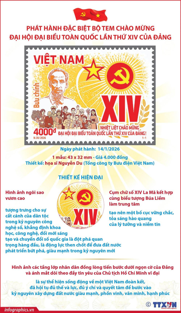 Nhằm góp phần tuyên truyền sâu rộng trong toàn thể cán bộ, đảng viên và các tầng lớp nhân dân về tầm vóc, ý nghĩa của Đại hội đại biểu toàn quốc lần thứ XIV của Đảng, Bộ Khoa học và Công nghệ phát hành đặc biệt bộ tem bưu chính “Chào mừng Đại hội đại biểu toàn quốc lần thứ XIV của Đảng!”