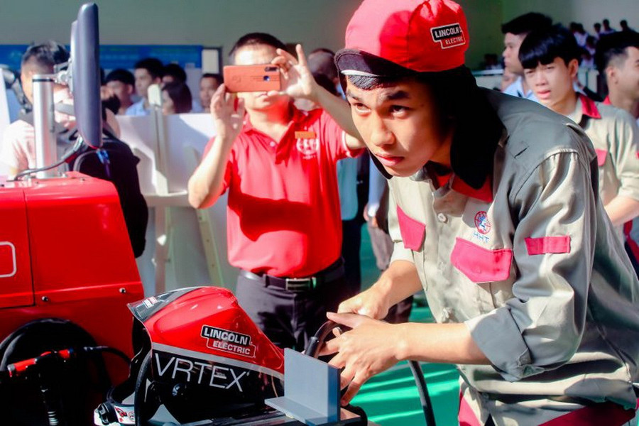 Sinh viên Trường Cao đẳng nghề Công nghệ cao Hà Nội trình diễn tại Tuần lễ kỹ năng nghề Australia ở Việt Nam. Ảnh: Website nhà trường