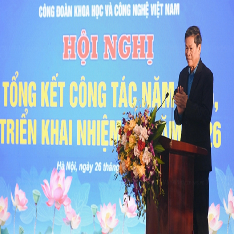 Sáng ngày 26/01/2026, tại Hà Nội, Công đoàn Khoa học và Công nghệ Việt Nam tổ chức Hội nghị tổng kết công tác công đoàn năm 2025, triển khai nhiệm vụ năm 2026. Hội nghị nhằm đánh giá toàn diện kết quả hoạt động công đoàn năm 2025; xác định phương hướng, nhiệm vụ và giải pháp trọng tâm năm 2026; đồng thời phát động phong trào thi đua thực hiện thắng lợi Nghị quyết Đại hội đại biểu toàn quốc lần thứ XIV của Đảng và Nghị quyết Đại hội Công đoàn Khoa học và Công nghệ Việt Nam nhiệm kỳ 2025–2030.