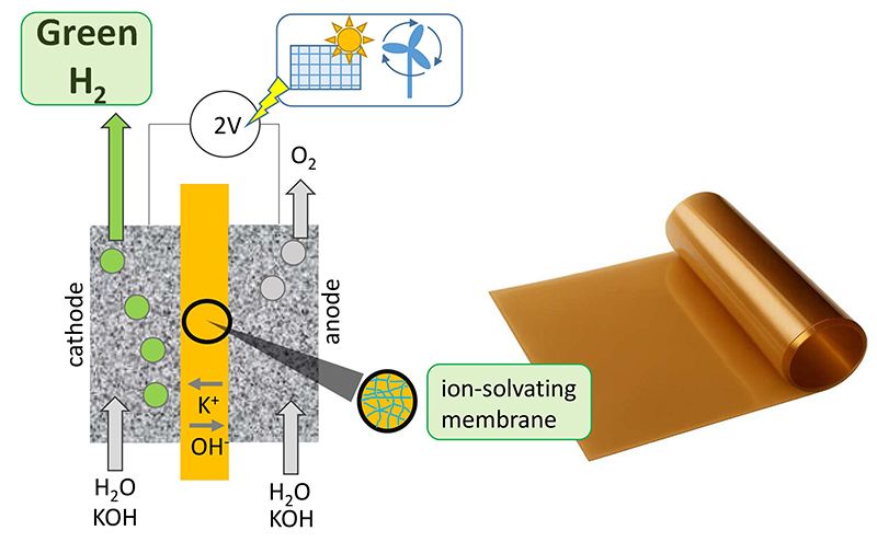 Một nhóm nghiên cứu do TS. Dirk Henkensmeier tại Trung tâm Nghiên cứu Hydro và Pin nhiên liệu thuộc Viện Khoa học và Công nghệ Hàn Quốc (KIST) dẫn đầu vừa công bố phát triển vật liệu màng điện phân mới có khả năng hoạt động ổn định và dẫn điện vượt trội trong điều kiện kiềm thấp.
