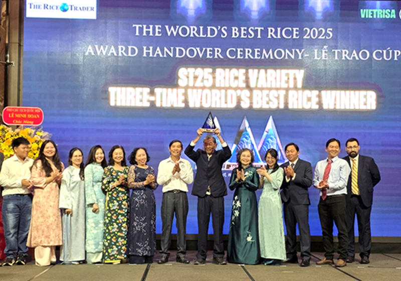 Gạo ST25 của Việt Nam về nhất cuộc thi "Gạo ngon nhất thế giới" năm 2025, cùng với gạo Phka Romdoul của nước chủ nhà Campuchia. Do Ban tổ chức chỉ có một chiếc cúp, giải thưởng được trao trước cho nước chủ nhà, đến nay đại diện của Tổ chức The Rice Trader đã trực tiếp đến TP Cần Thơ trao cúp cho ông Hồ Quang Cua.
