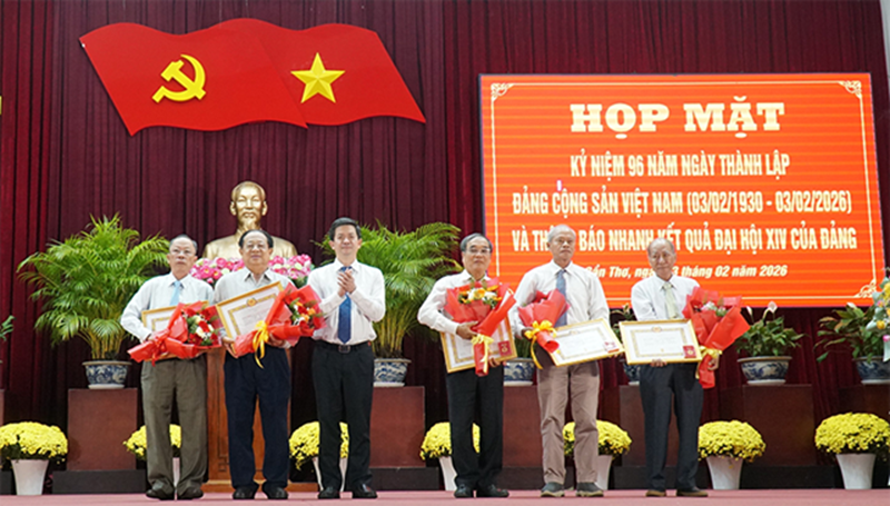 (CTO) - Chiều 3-2, Thành ủy, HĐND, UBND, Ủy ban MTTQVN TP Cần Thơ tổ chức họp mặt kỷ niệm 96 năm Ngày thành lập Đảng Cộng sản Việt Nam (3/2/1930-3/2/2026) và thông báo nhanh kết quả Đại hội đại biểu toàn quốc lần thứ XIV của Đảng.
