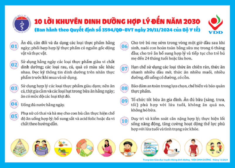 10 lời khuyên dinh dưỡng của Bộ Y tế.
