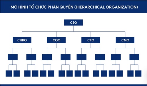Đây là cấu trúc truyền thống với hệ thống cấp bậc rõ ràng. Mệnh lệnh được truyền từ lãnh đạo cấp cao xuống các tầng quản lý trung gian rồi đến nhân viên. Đề xuất từ cấp dưới phải đi theo chiều ngược lại để được phê duyệt.