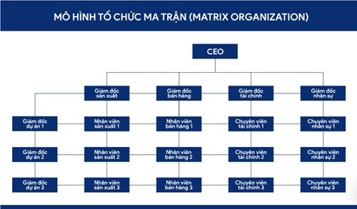 Cấu trúc ma trận kết hợp quản lý theo chức năng và theo dự án hoặc sản phẩm. Nhân sự có thể đồng thời báo cáo cho quản lý chức năng và quản lý dự án.