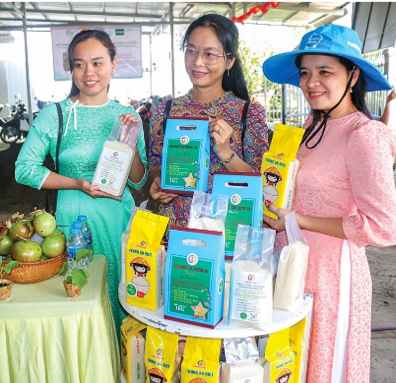 Các sản phẩm gạo được gắn logo nhãn hiệu “Gạo xanh, phát thải thấp” của Công ty cổ phần nông nghiệp công nghệ cao Trung An.
