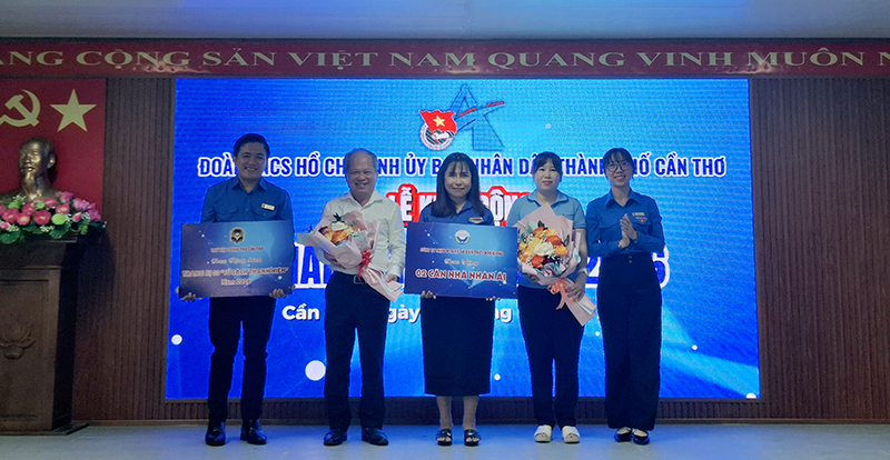 Công ty TNHH MTV XSKT Hậu Giang trao bảng tượng trưng “Tặng 02 căn nhà nhân ái” và Thư viện TP Cần Thơ lên trao bảng tượng trưng “Tặng 03 tủ sách thanh niên” cho Ban Thường vụ Đoàn UBND thành phố Cần Thơ.
