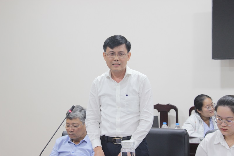 TS. Lê Văn Điện, Phó Trưởng ban Thường trực Ban Tuyên giáo và Dân vận Thành ủy, phát biểu góp ý cho đề tài.