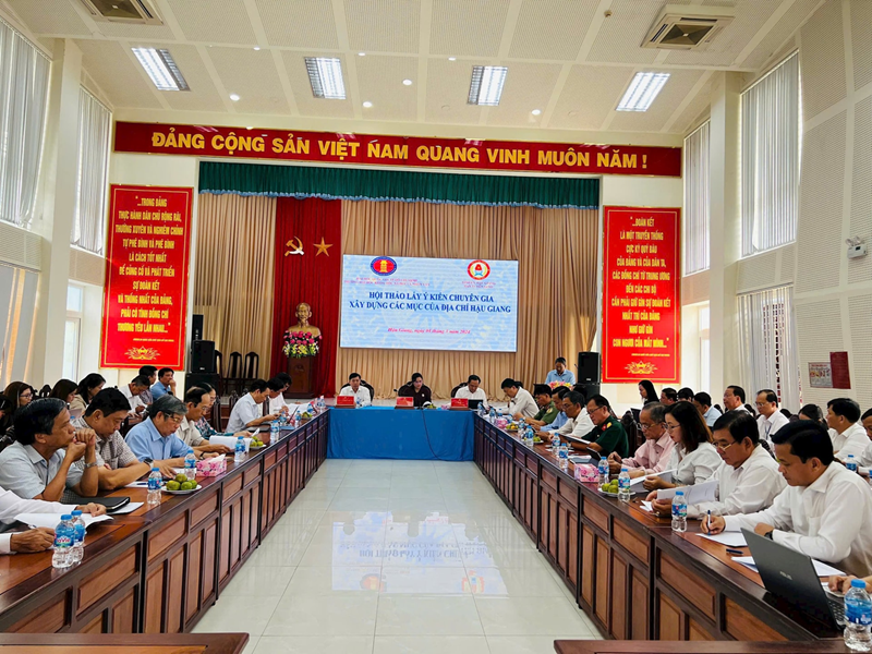 Hội thảo lấy ý kiến chuyên gia xây dựng các mục của "Địa chí Hậu Giang". Ảnh PL.