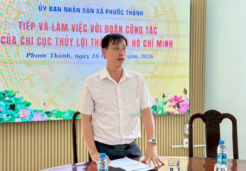 Chiều 16/3, Đoàn công tác Chi cục Thủy lợi TP. HCM do ông Võ Quốc Cường, Phó Chi Cục trưởng làm Trưởng đoàn đã có buổi làm việc với UBND xã Phước Thành nhằm kiểm tra thực tế và đánh giá kết quả thực hiện Bộ chỉ số theo dõi – đánh giá nước sạch nông thôn năm 2025.
