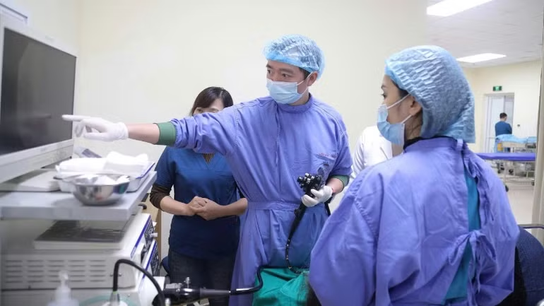Kỹ thuật viên đang thực hiện đánh giá tổn thương thực quản qua hệ thống nội soi hiện đại