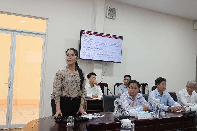 TS. Nguyễn Thị Thuở, Chủ nhiệm dự án, báo cáo trước Hội đồng.