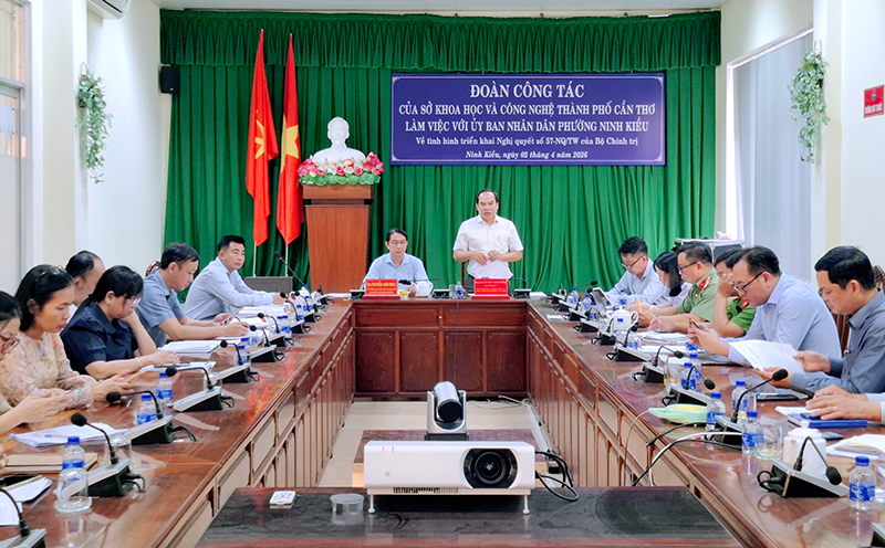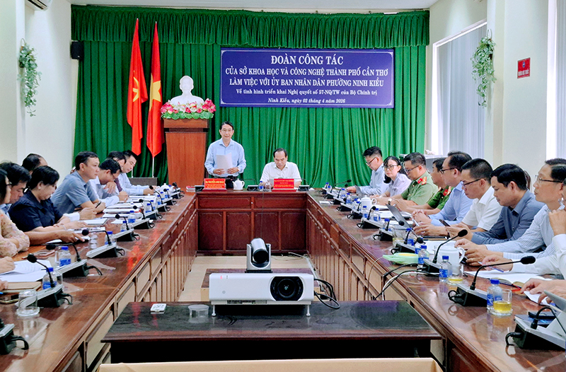 Nhằm kịp thời nắm bắt tình hình và tháo gỡ khó khăn trong quá trình triển khai Nghị quyết số 57-NQ/TW, Sở Khoa học và Công nghệ TP. Cần Thơ đã tổ chức buổi làm việc với UBND phường Ninh Kiều vào chiều ngày 02/4/2026.