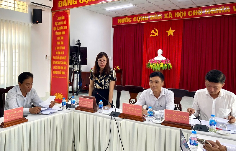 Bà Nguyễn Thị Màu - Phó Bí thư Đảng ủy, Chủ tịch UBND phường Vị Tân, phát biểu tại buổi làm việc.